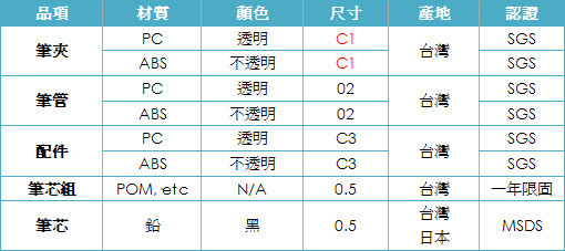 . 大印刷面C1笔夹,柔软胶套,最低0.8 kg抗压笔芯